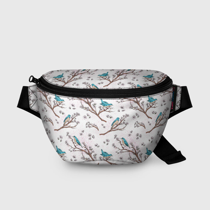 Поясная сумка 3D Птички весной на ветках Сакуры