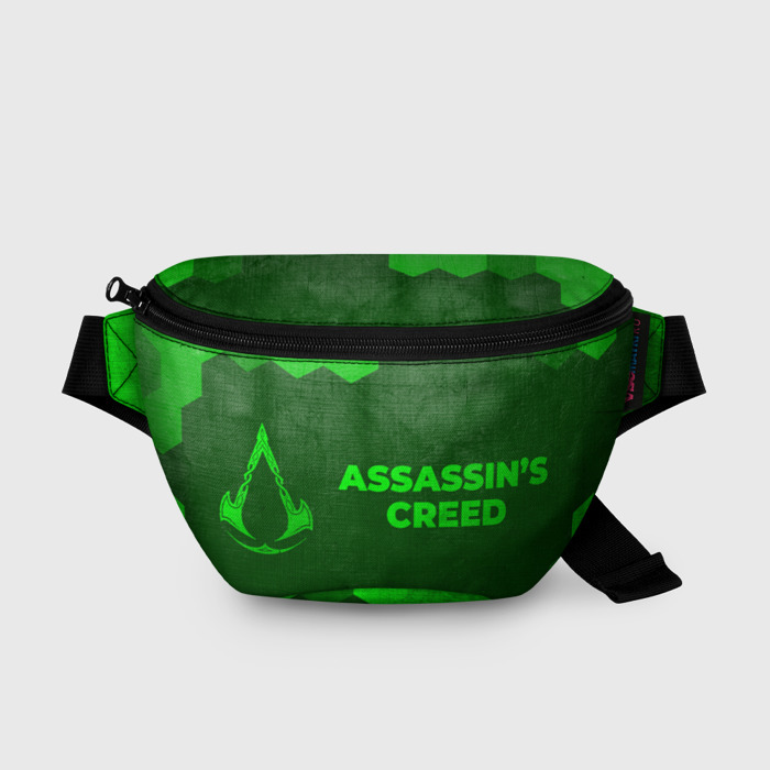 Поясная сумка 3D с принтом Assassins Creed green gradient по горизонтали
