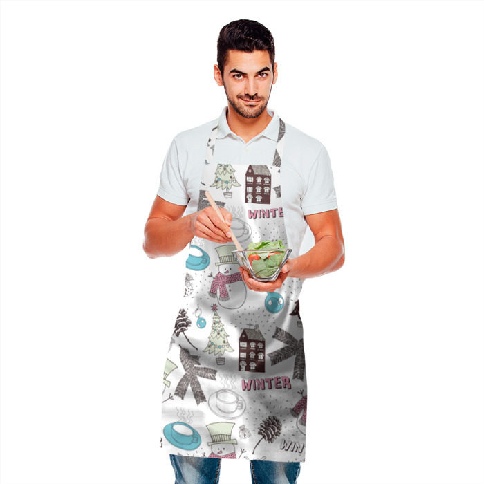 Фартук 3D с принтом Снеговики Новый год 2017