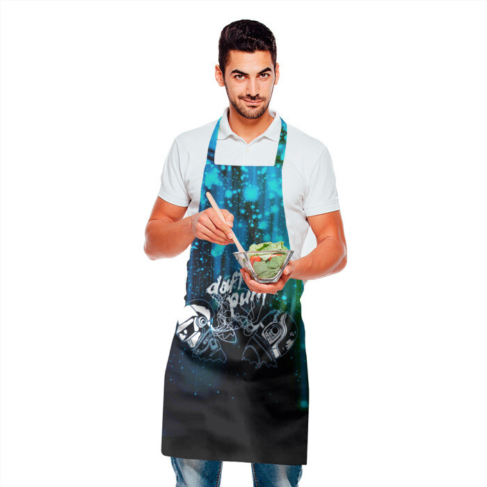 Фартук 3D сшит из гладкой синтетической ткани, по всей поверхности которой наносится рисунок. Принт впечатывается в ткань и сохраняет свою яркость и четкость даже спустя сотни стирок. Завязки длинные, так что фартук подойдет людям с разной фигурой. Можно заказать со своим дизайном.