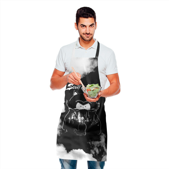 Фартук 3D сшит из гладкой синтетической ткани, по всей поверхности которой наносится рисунок. Принт впечатывается в ткань и сохраняет свою яркость и четкость даже спустя сотни стирок. Завязки длинные, так что фартук подойдет людям с разной фигурой. Можно заказать со своим дизайном.