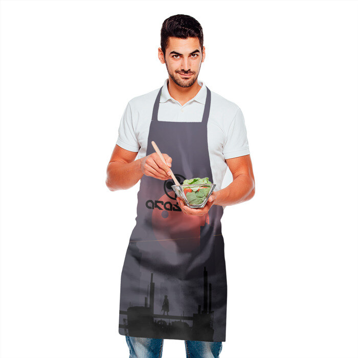 Фартук 3D сшит из гладкой синтетической ткани, по всей поверхности которой наносится рисунок. Принт впечатывается в ткань и сохраняет свою яркость и четкость даже спустя сотни стирок. Завязки длинные, так что фартук подойдет людям с разной фигурой. Можно заказать со своим дизайном.