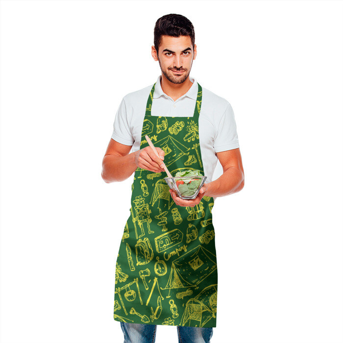 Фартук 3D сшит из гладкой синтетической ткани, по всей поверхности которой наносится рисунок. Принт впечатывается в ткань и сохраняет свою яркость и четкость даже спустя сотни стирок. Завязки длинные, так что фартук подойдет людям с разной фигурой. Можно заказать со своим дизайном.