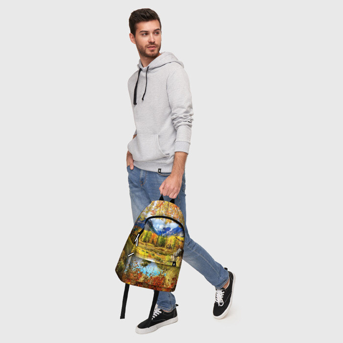 Вместительный рюкзак в стиле унисекс, который подойдет для похода и в школу или университет, и в магазин за продуктами, а также для небольшого путешествия. Сделан из плотного текстиля, вся внешняя поверхность которого покрывается принтом, в том числе верхняя часть лямок.