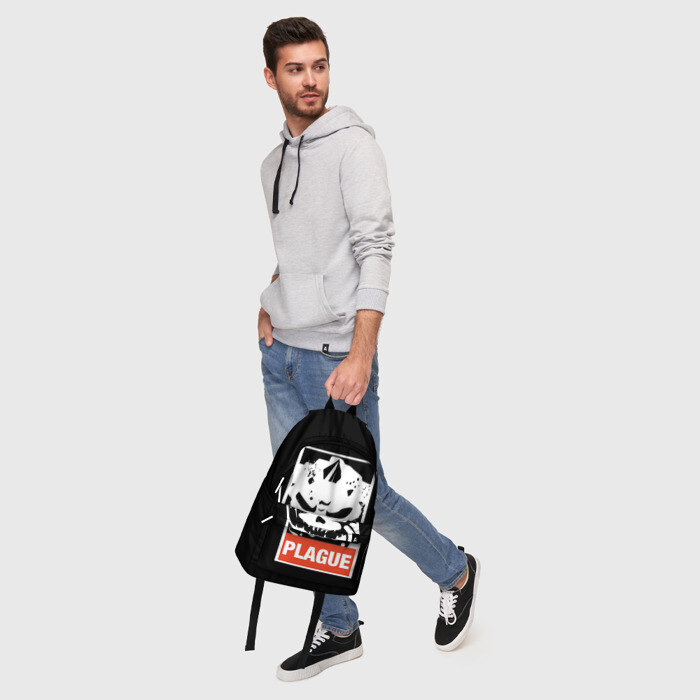 Вместительный рюкзак в стиле унисекс, который подойдет для похода и в школу или университет, и в магазин за продуктами, а также для небольшого путешествия. Сделан из плотного текстиля, вся внешняя поверхность которого покрывается принтом, в том числе верхняя часть лямок.