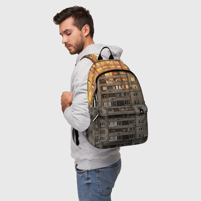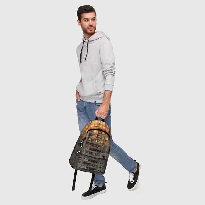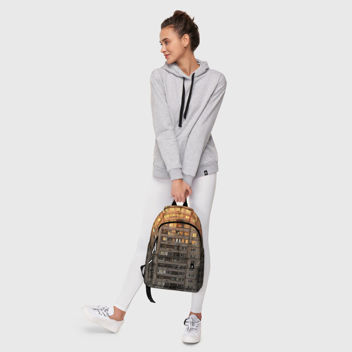 Вместительный рюкзак в стиле унисекс, который подойдет для похода и в школу или университет, и в магазин за продуктами, а также для небольшого путешествия. Сделан из плотного текстиля, вся внешняя поверхность которого покрывается принтом, в том числе верхняя часть лямок.