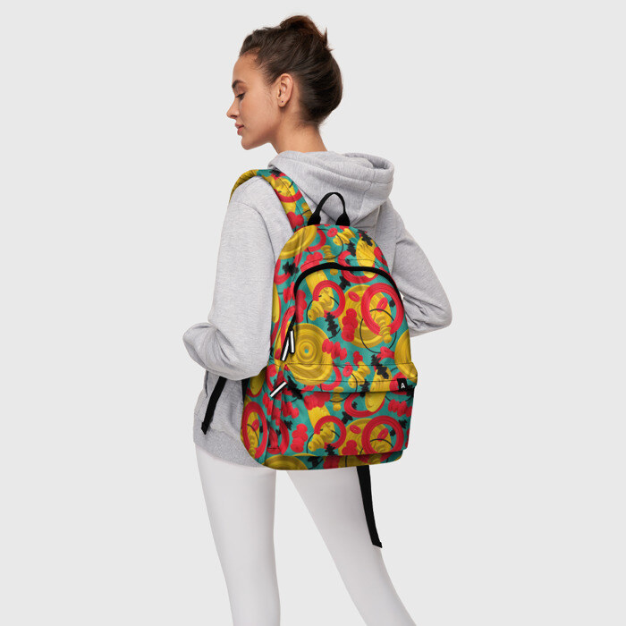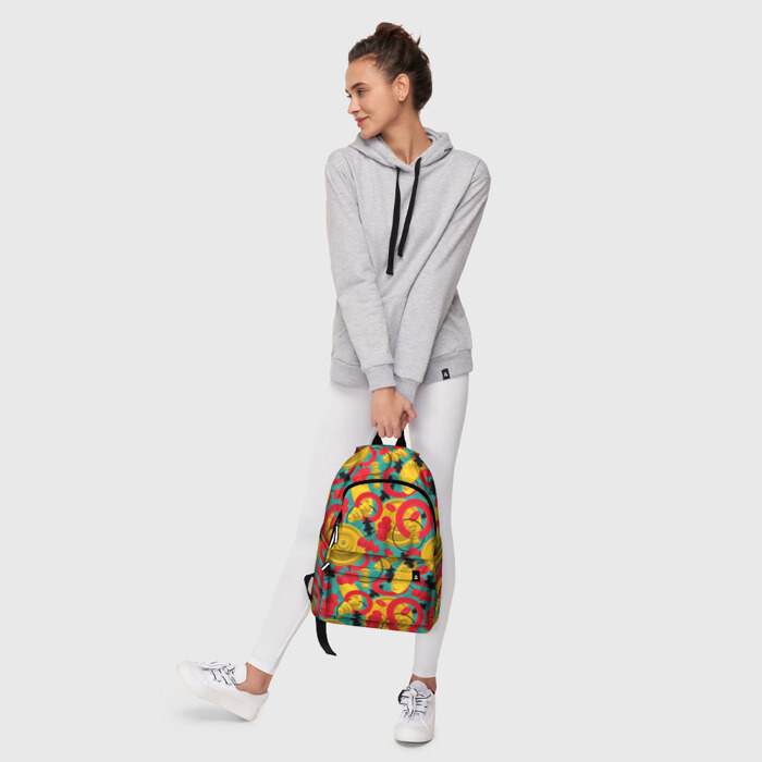 Вместительный рюкзак в стиле унисекс, который подойдет для похода и в школу или университет, и в магазин за продуктами, а также для небольшого путешествия. Сделан из плотного текстиля, вся внешняя поверхность которого покрывается принтом, в том числе верхняя часть лямок.