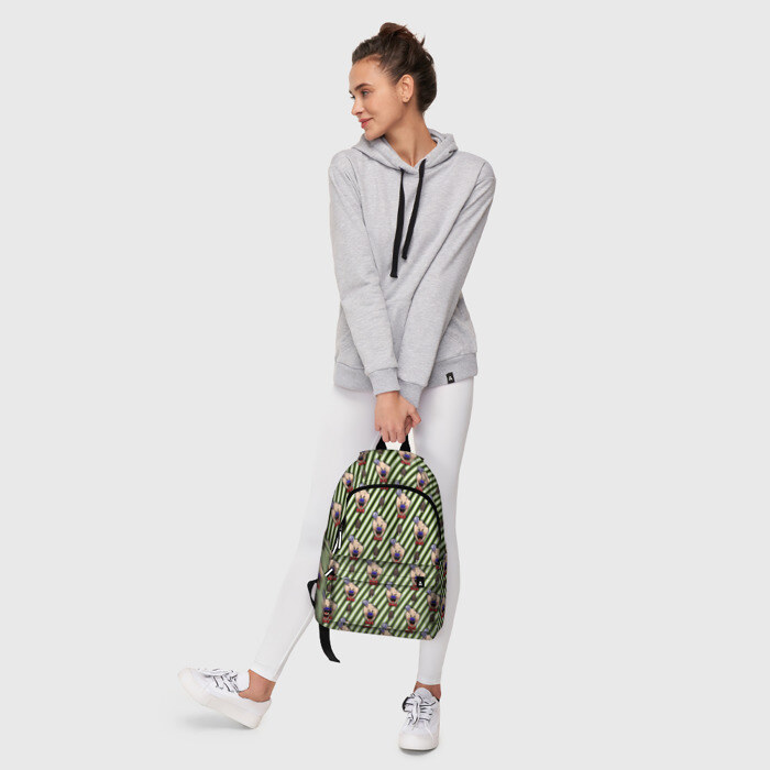 Вместительный рюкзак в стиле унисекс, который подойдет для похода и в школу или университет, и в магазин за продуктами, а также для небольшого путешествия. Сделан из плотного текстиля, вся внешняя поверхность которого покрывается принтом, в том числе верхняя часть лямок.