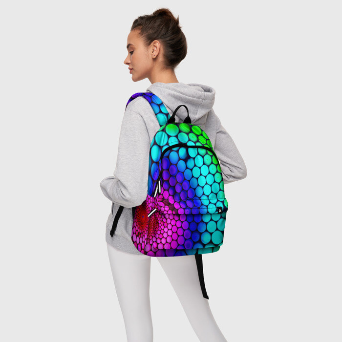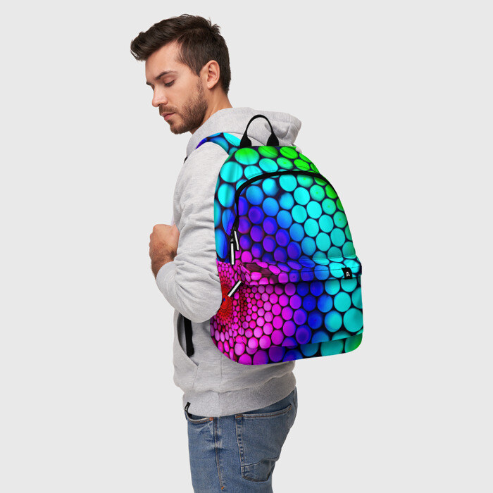 Вместительный рюкзак в стиле унисекс, который подойдет для похода и в школу или университет, и в магазин за продуктами, а также для небольшого путешествия. Сделан из плотного текстиля, вся внешняя поверхность которого покрывается принтом, в том числе верхняя часть лямок.