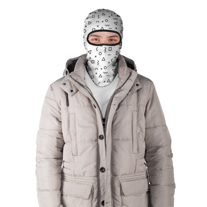 Балаклава сшита из специального дышащего материала, из которых создают спортивную одежду: особенности волокон ткани позволяют материалу быстро впитывать влагу и выводить ее на поверхность, откуда она испаряется. Так балаклава отводит лишнюю влагу, защищает вашу шею и лицо от ветра. Особенно эти свойства оценят активные люди и любители заниматься спортом на улице. Можно сделать со своим дизайном.