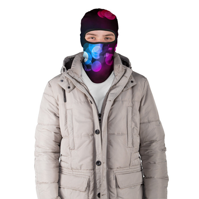 Балаклава сшита из специального дышащего материала, из которых создают спортивную одежду: особенности волокон ткани позволяют материалу быстро впитывать влагу и выводить ее на поверхность, откуда она испаряется. Так балаклава отводит лишнюю влагу, защищает вашу шею и лицо от ветра. Особенно эти свойства оценят активные люди и любители заниматься спортом на улице. Можно сделать со своим дизайном.