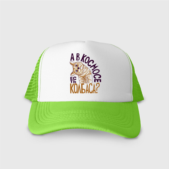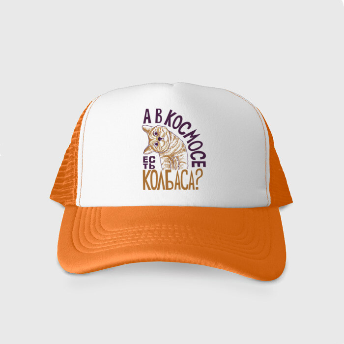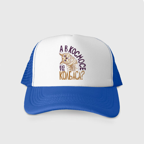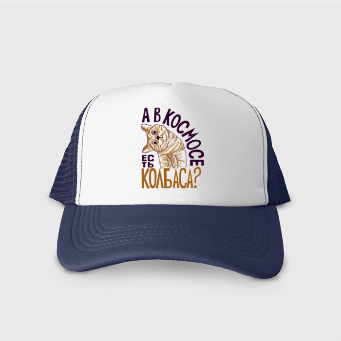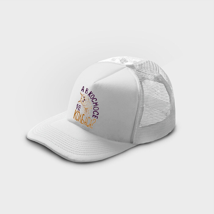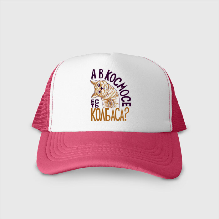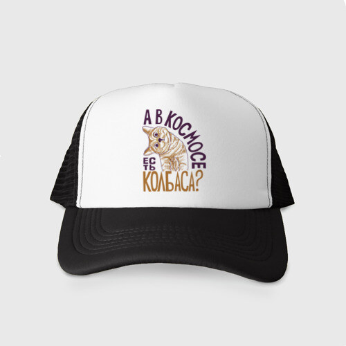 Кепка тракер с сеткой с принтом Кот и колбаса