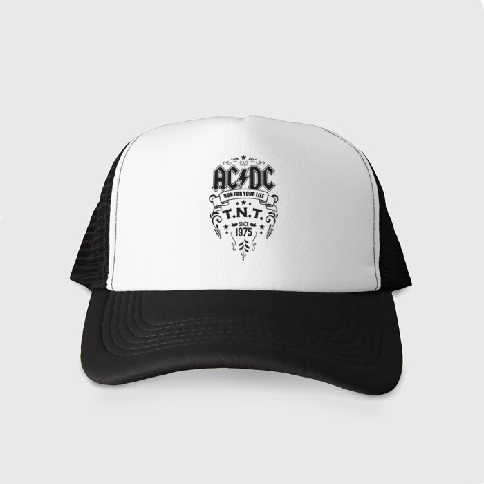 Кепка тракер с сеткой с принтом AC/DC run for your life