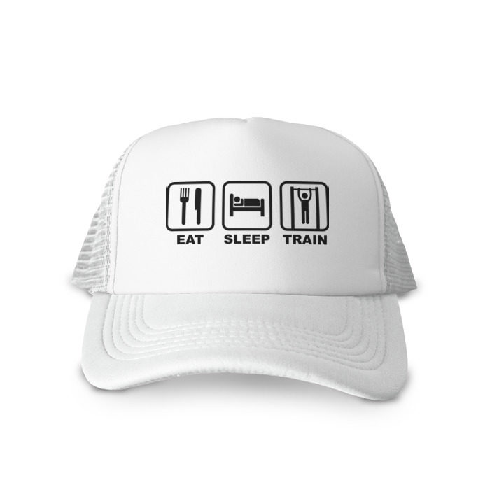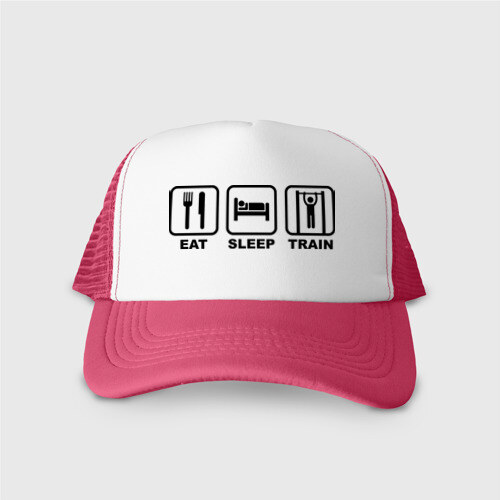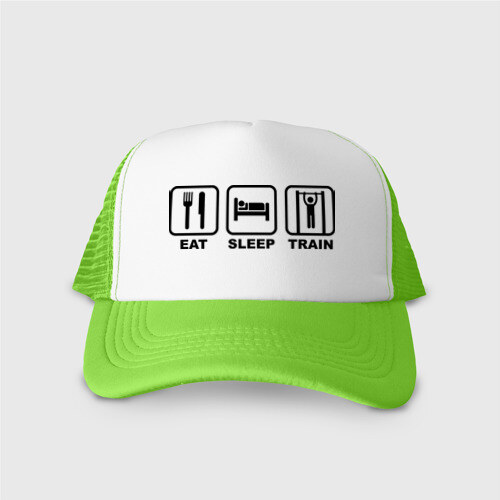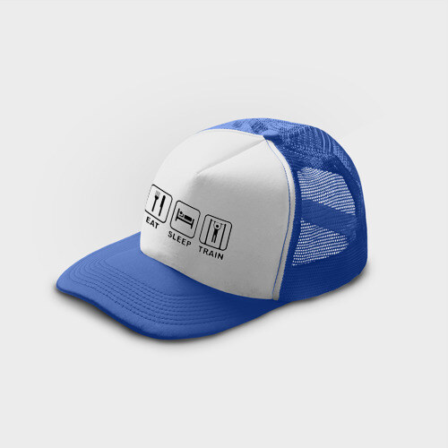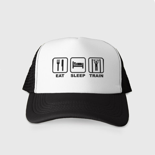 Кепка тракер с сеткой с принтом Еда сон тренировки (Eat, Sleep, Train)