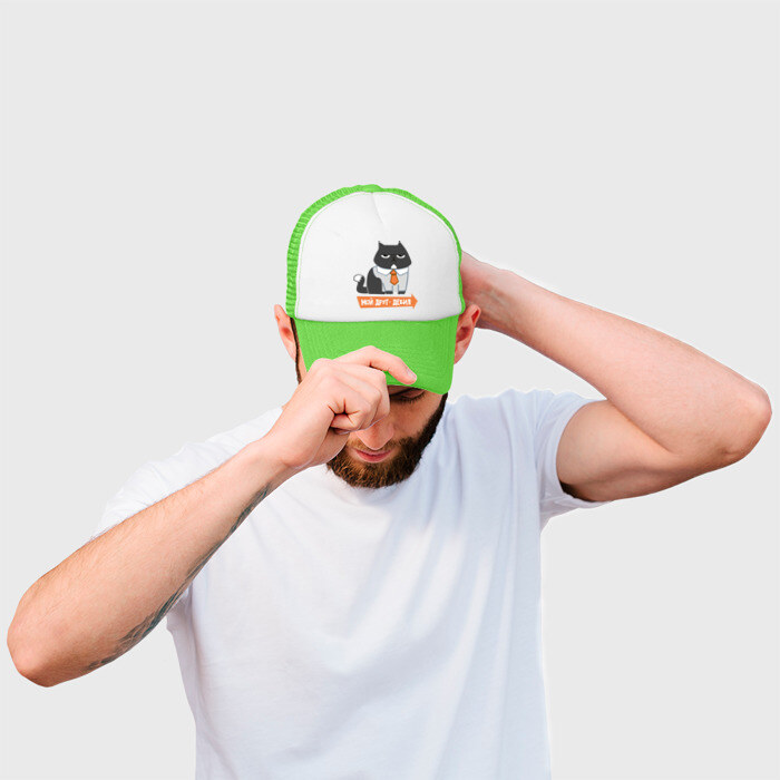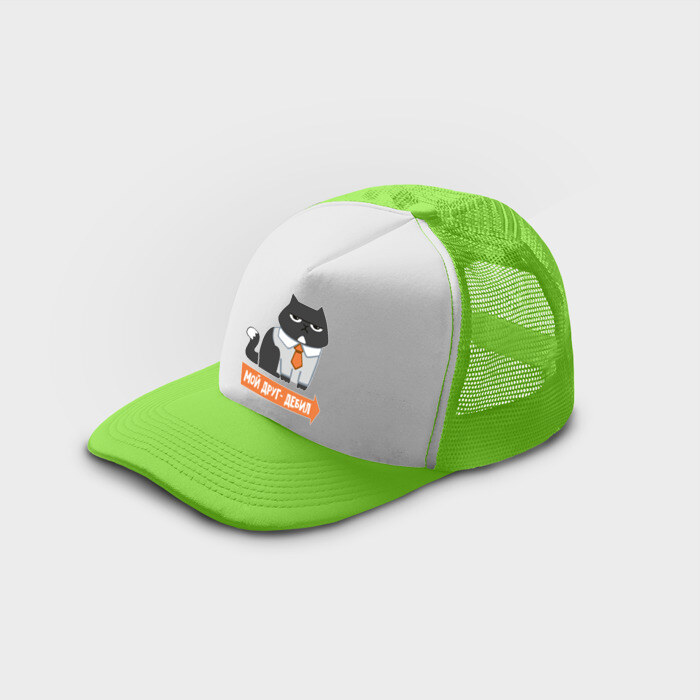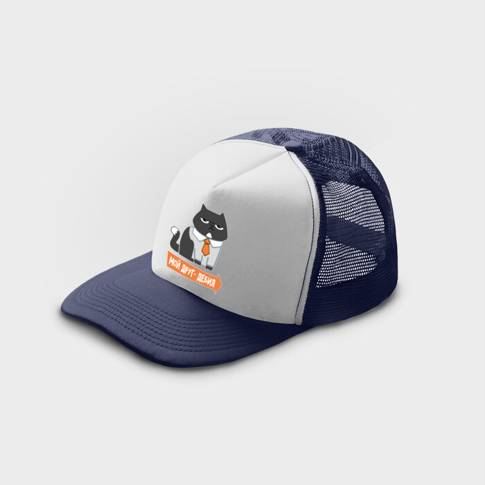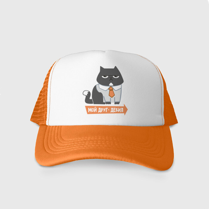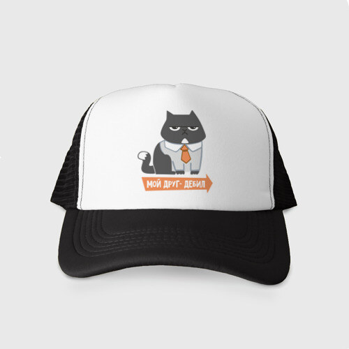 Кепка тракер с сеткой с принтом Мой друг- дебил