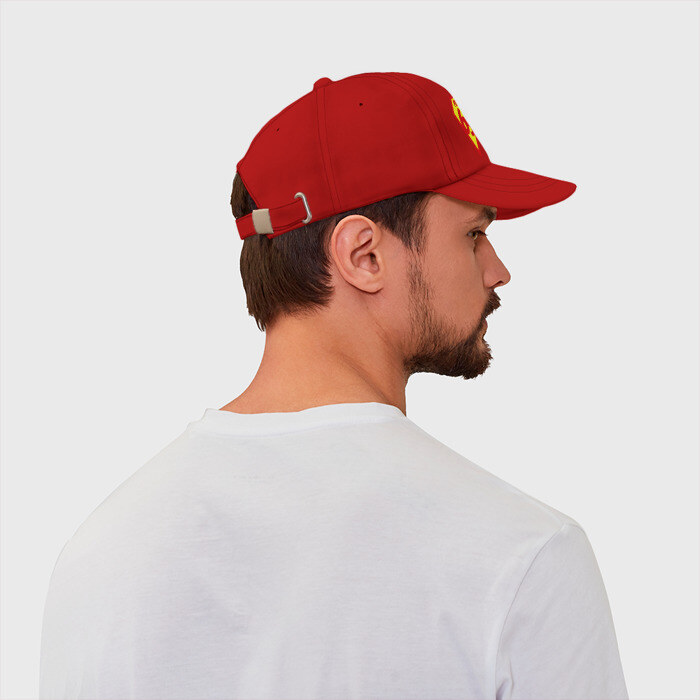 Бейсболка из ткани с классической длиной и шириной козырька. Размер можно регулировать с помощью удобной застежки сзади. Принт наносится только спереди, можно сделать со своим дизайном.