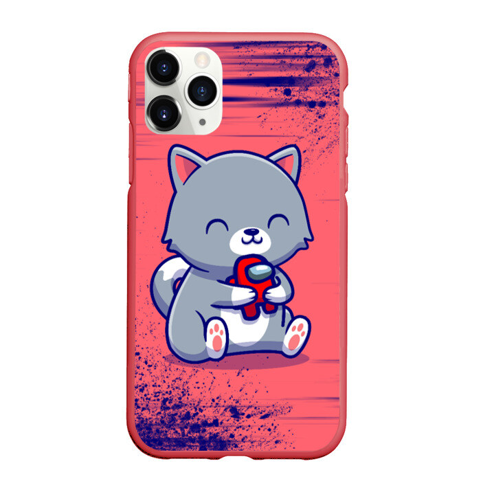 Чехол для iPhone 11 Pro матовый AMONG US - С КОТИКОМ