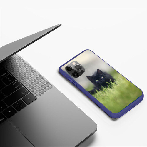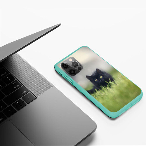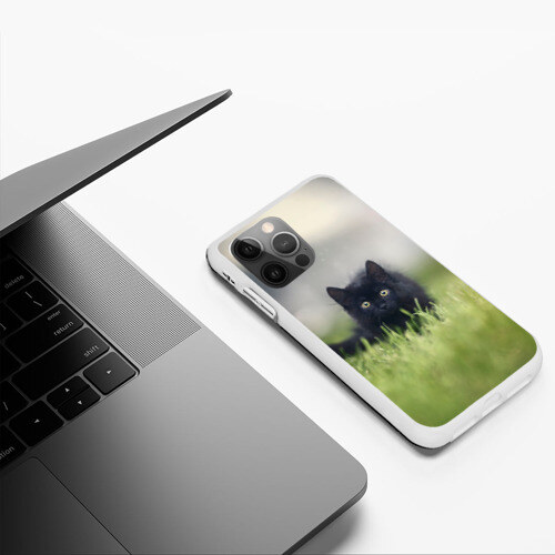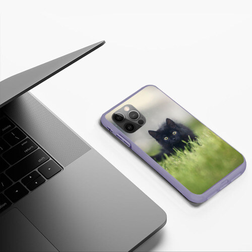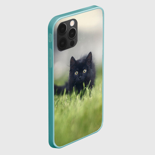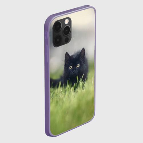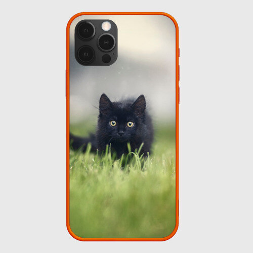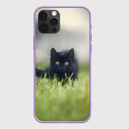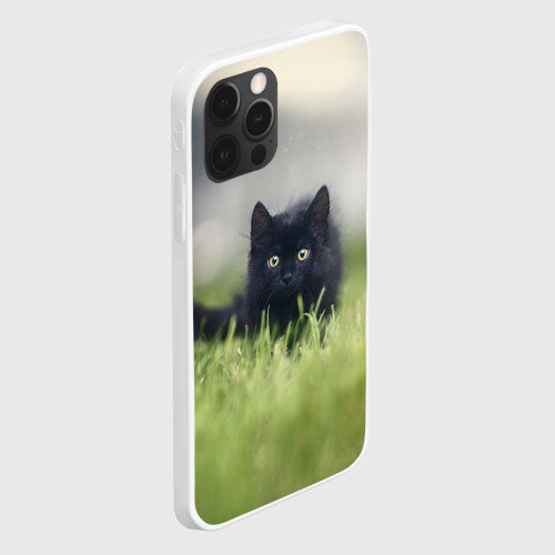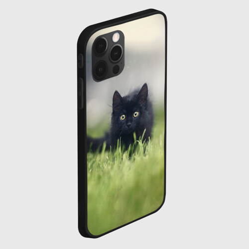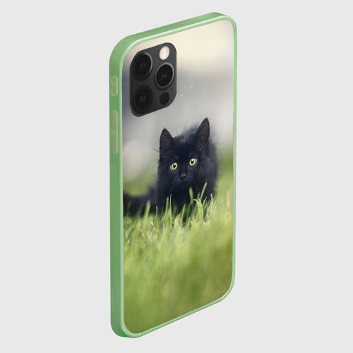Чехол для iPhone 12 Pro Max ЧЕРНЫЙ КОТ НА ЛУГУ