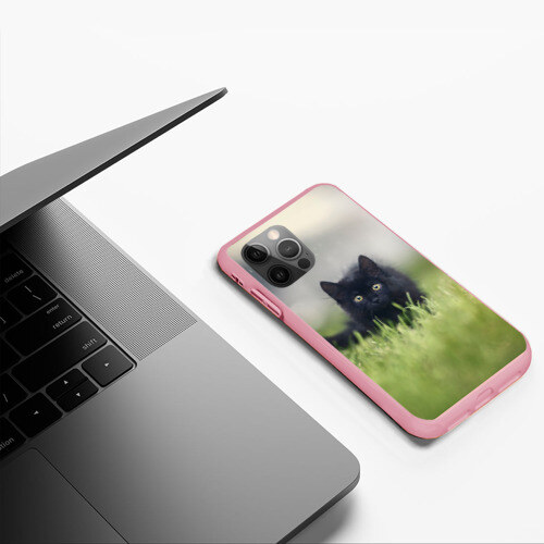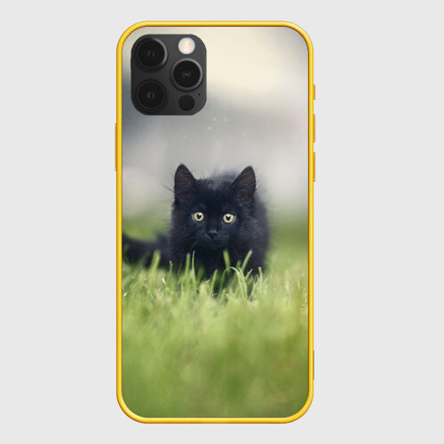 Чехол для iPhone 12 Pro Max черный кот на лугу