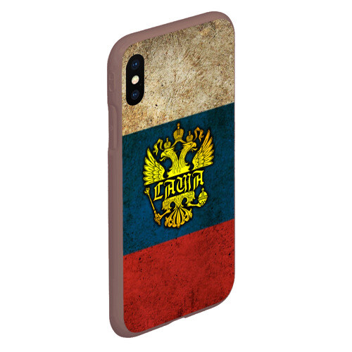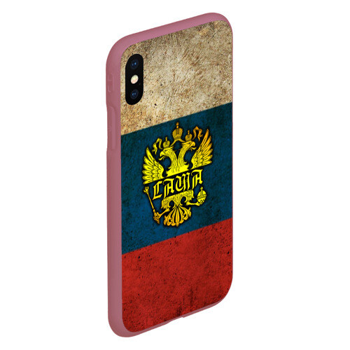Чехол для iPhone XS Max матовый САША В ГЕРБЕ НА ФЛАГЕ РФ