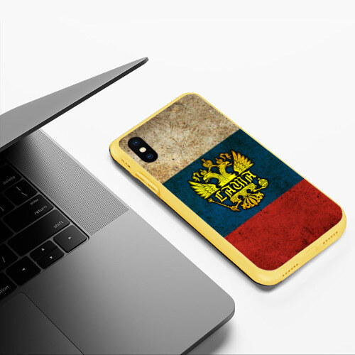 Чехлы для iPhone X САША В ГЕРБЕ НА ФЛАГЕ РФ