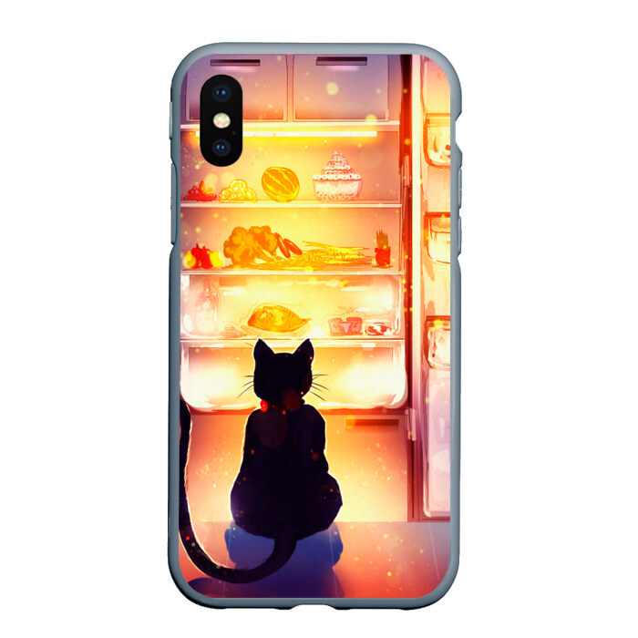 Чехлы для iPhone X ЧЕРНЫЙ КОТ ХОЛОДИЛЬНИК НОЧЬ