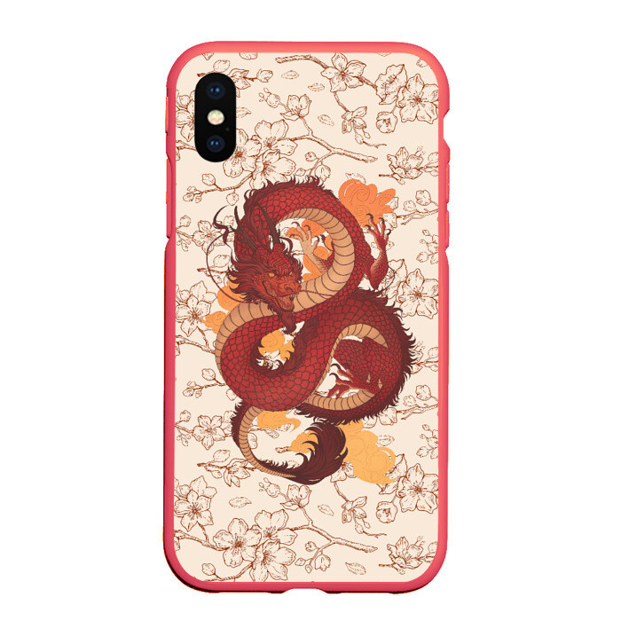 Чехлы для iPhone X КИТАЙСКИЙ ДРАКОН И САКУРА