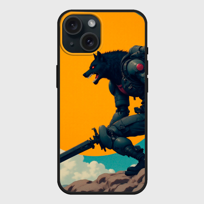 Чехол силиконовый для Apple iPhone 15 матовый Киберчеловек волк