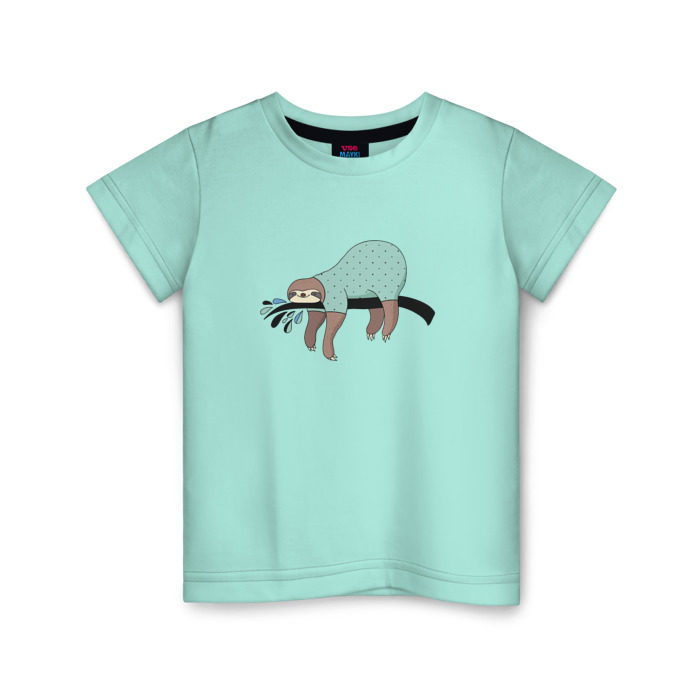 Детская футболка хлопок с принтом Ленивец спит
