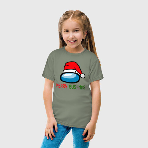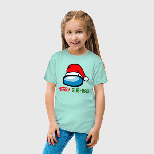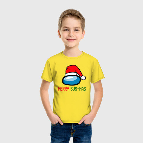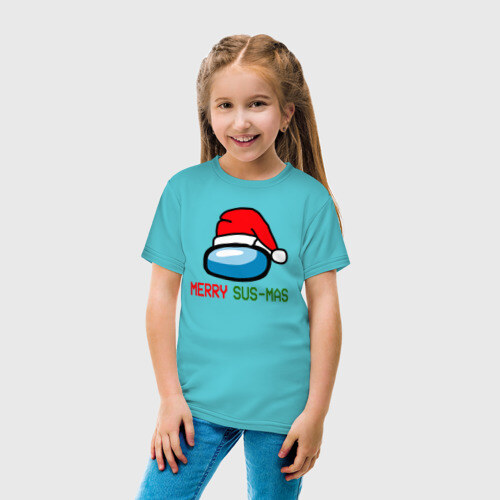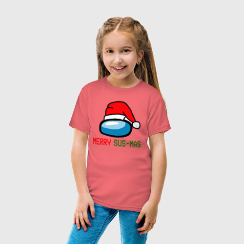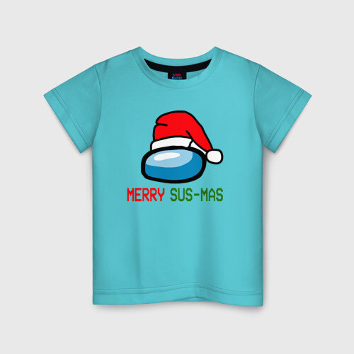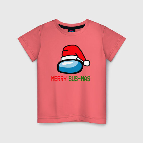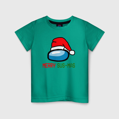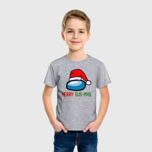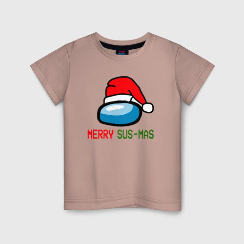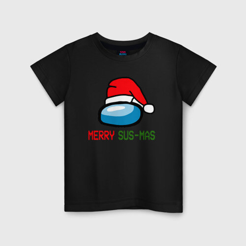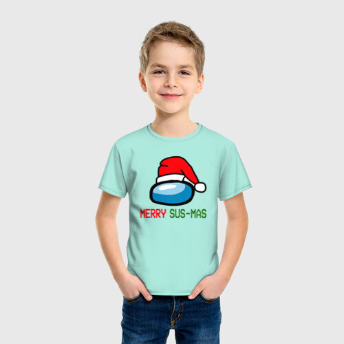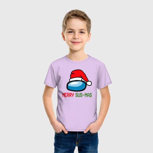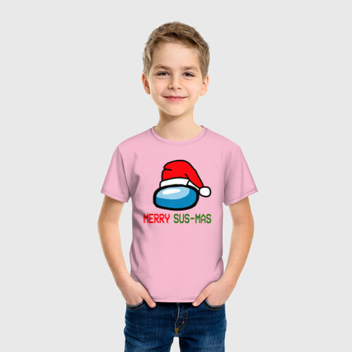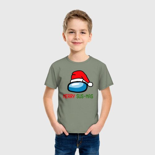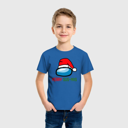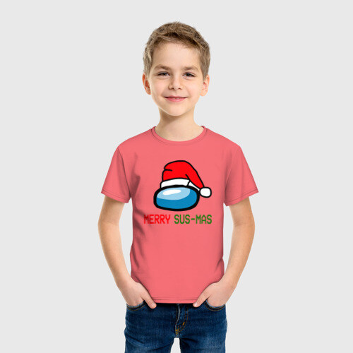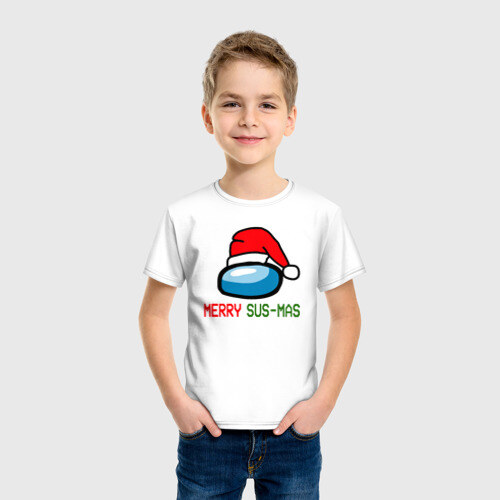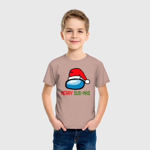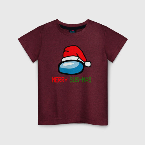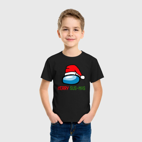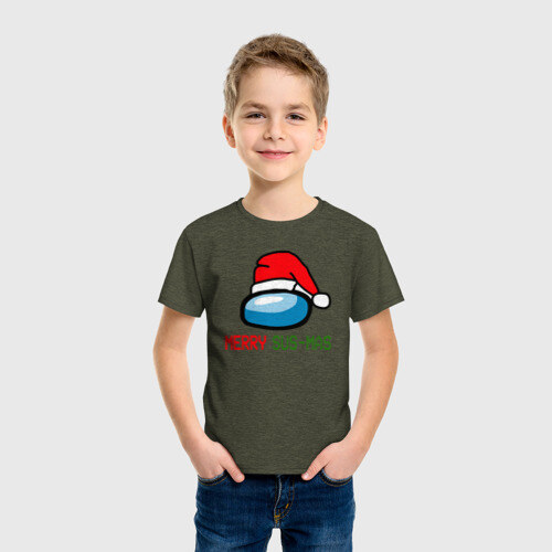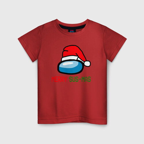 Детская футболка хлопок с принтом AMONG US НОВОГОДНИЙ
