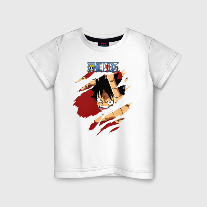 Детская футболка хлопок с принтом Луффи One Piece в разрыве