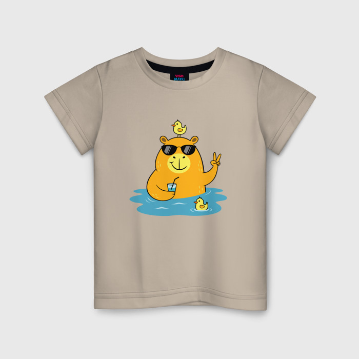 Детская футболка хлопок Капибара на море с уточками
