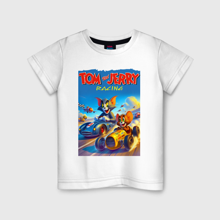 Детская футболка хлопок с принтом Tom and Jerry racing
