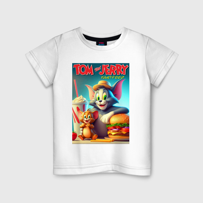 Детская футболка хлопок с принтом Jerry and Tom fast food