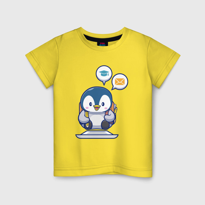 Детская футболка хлопок с принтом Пингвин пишет письмо