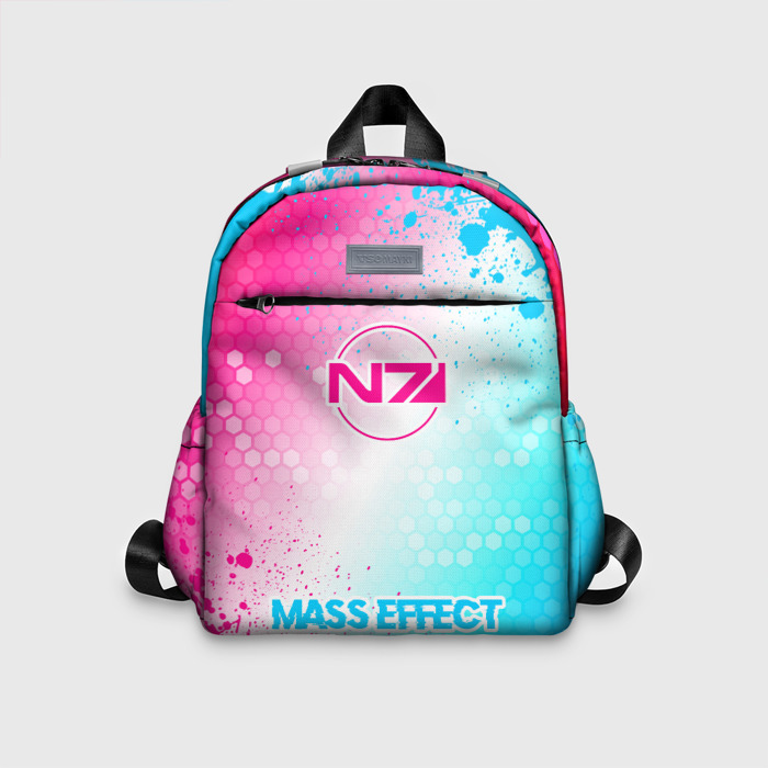 Детский рюкзак 3D с принтом Mass Effect neon gradient style по центру