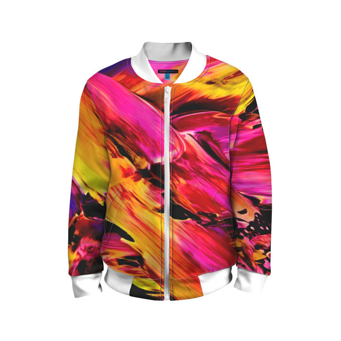 Бомбер — это короткая куртка на молнии, с эластичными вставками-резинками и манжетами. Удобный трендовый аксессуар, сшитый из комфортной синтетической ткани, на всей поверхности которой наносится принт. Можно сделать со своим дизайном.