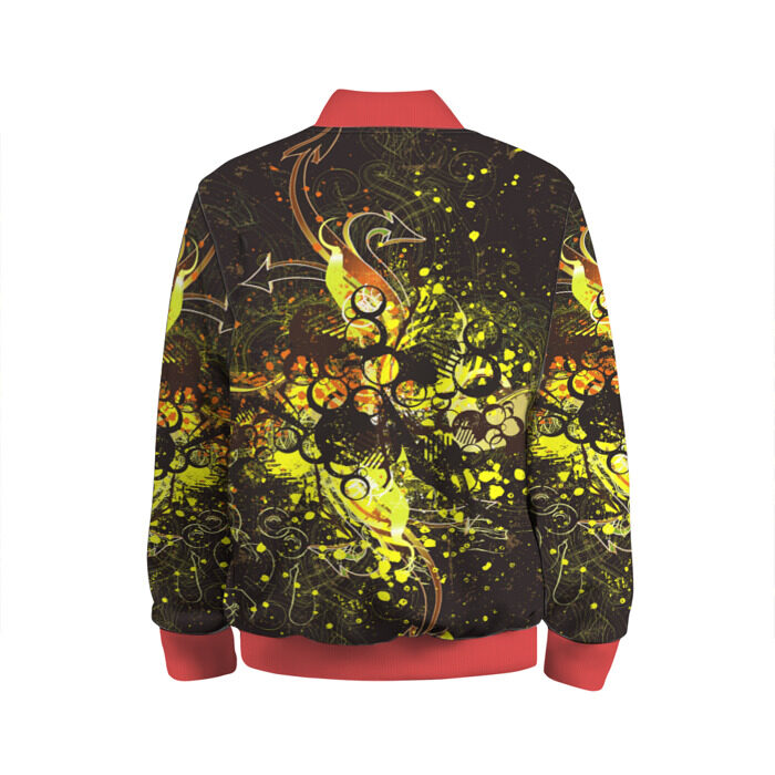 Бомбер — это короткая куртка на молнии, с эластичными вставками-резинками и манжетами. Удобный трендовый аксессуар, сшитый из комфортной синтетической ткани, на всей поверхности которой наносится принт. Можно сделать со своим дизайном.