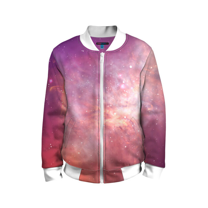Бомбер — это короткая куртка на молнии, с эластичными вставками-резинками и манжетами. Удобный трендовый аксессуар, сшитый из комфортной синтетической ткани, на всей поверхности которой наносится принт. Можно сделать со своим дизайном.