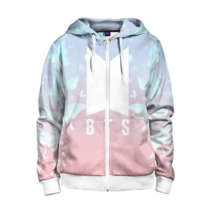 Детская толстовка 3D на молнии с принтом BTS BUTTERFLIES