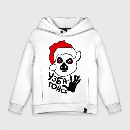 Детское худи Oversize хлопок с принтом Узбагойся!С новым годом