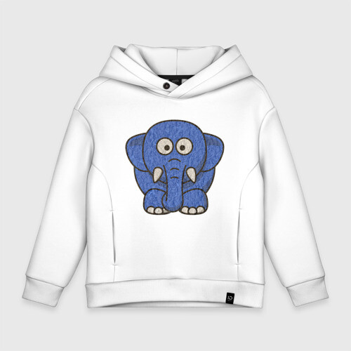 Детское худи Oversize хлопок с принтом Голубой слоник