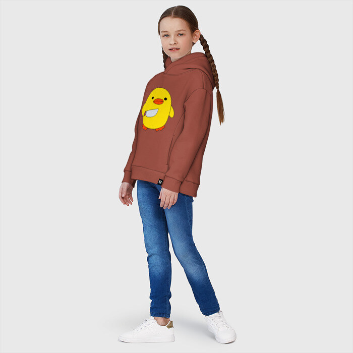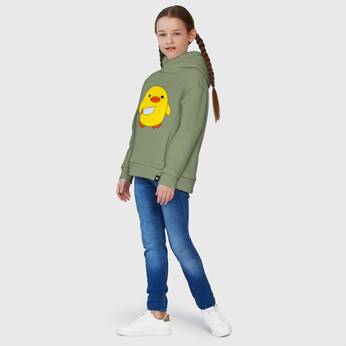 Детское худи Oversize хлопок с принтом УТКА С НОЖОМ КРУГЛЯШ