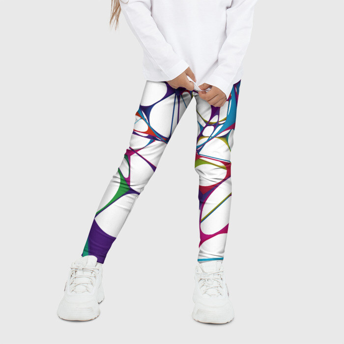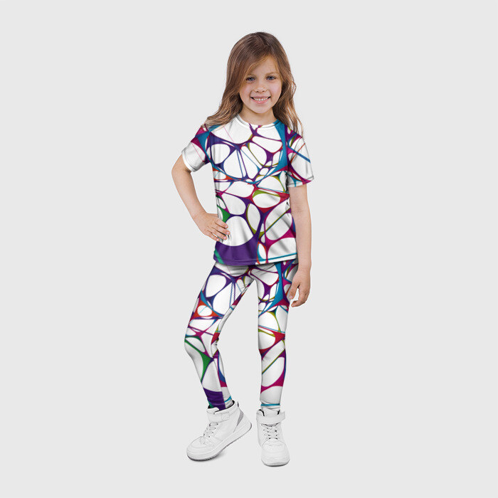 обтягивающие брюки из плотной синтетической ткани. На поясе — широкая резинка. Тянутся и хорошо держат форму. Подобрав футболку или толстовку, можно заказать костюм со своим дизайном.
