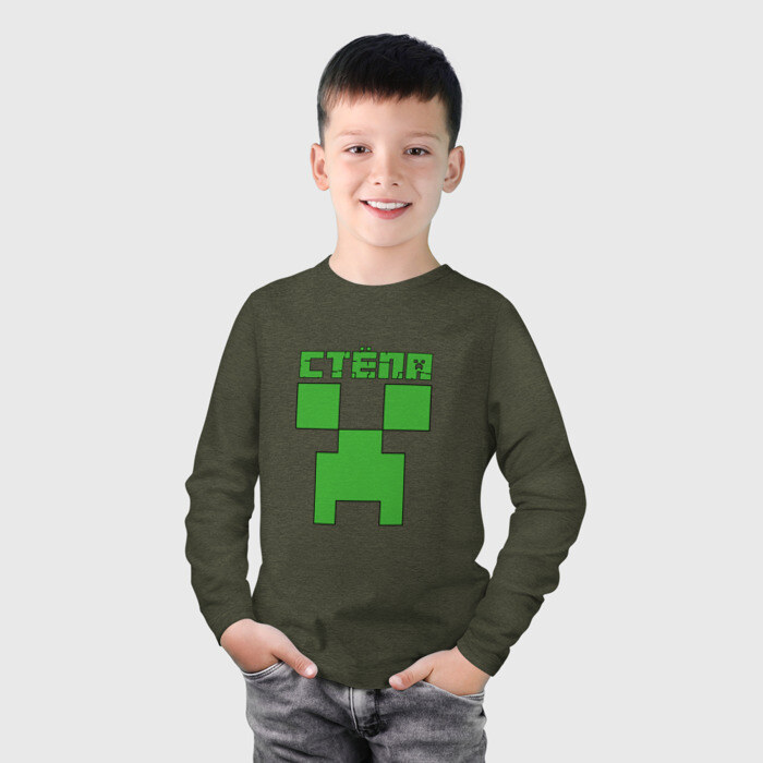 Детский лонгслив хлопок с принтом Стёпа - Minecraft