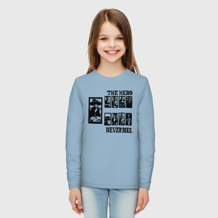 Детские лонгсливы THE HERO NEVER DIES. ONE PIECE