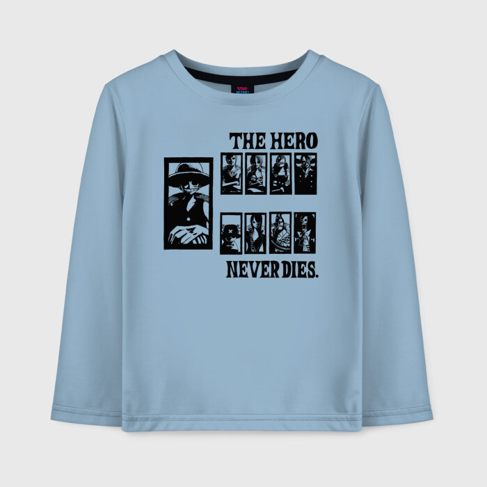 Детский лонгслив хлопок с принтом THE HERO NEVER DIES. One Piece