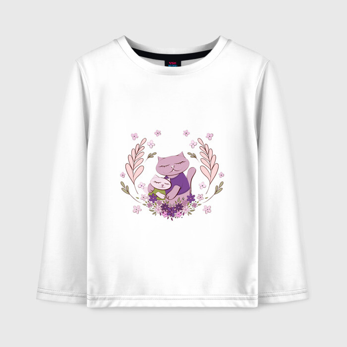 Детский лонгслив хлопок Розовые кошечка с котёнком в рамочке из цветов