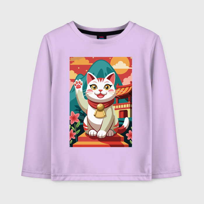 Детский лонгслив хлопок Манеки Неко, кошка удачи