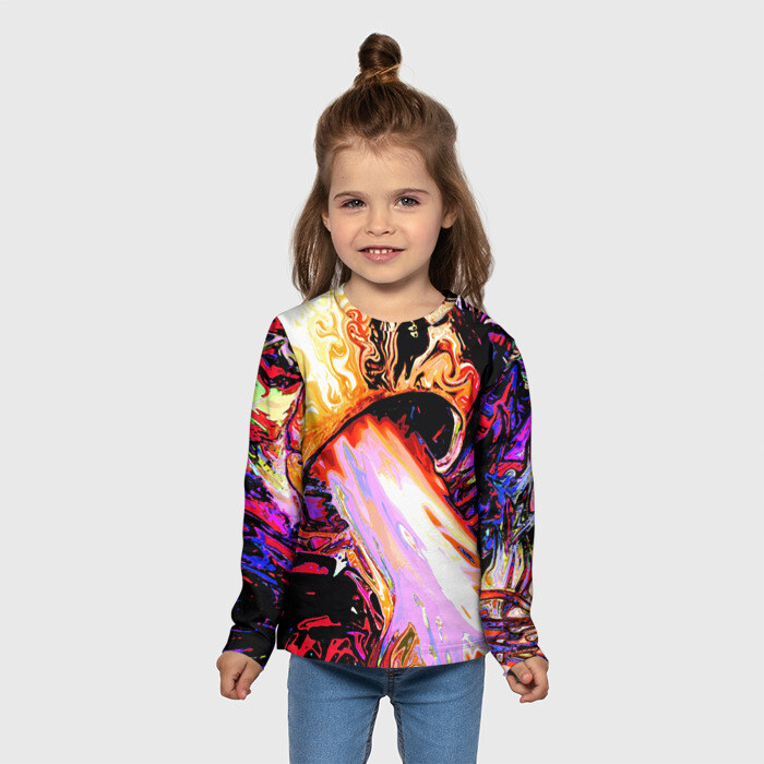 Лонгслив 3D — это футболка с длинным рукавом, сшитая из гладкого синтетического материала, вся поверхность которого покрыта ярким принтом. В одежде 3D принт впечатывается в ткань и становится с ней одним целым, так что изображение сохранит свою яркость и четкость даже спустя сотни стирок. Можно сделать со своим дизайном.